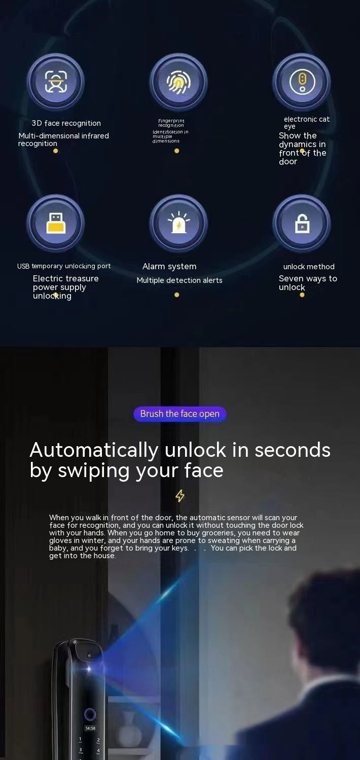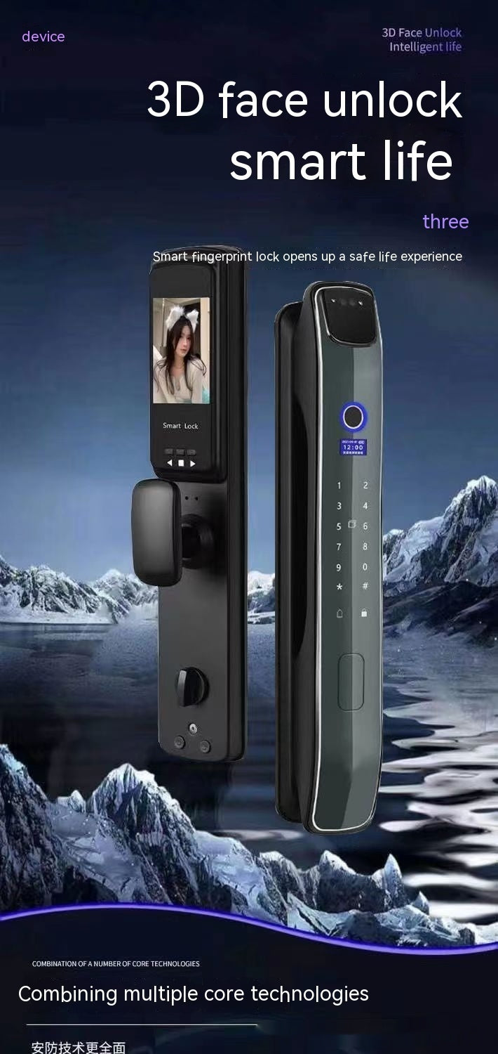 Automatic Fingerprint Lock Household Anti-theft Door 3d Face Recognition Smart Lock Peephole Viewer Password Lock